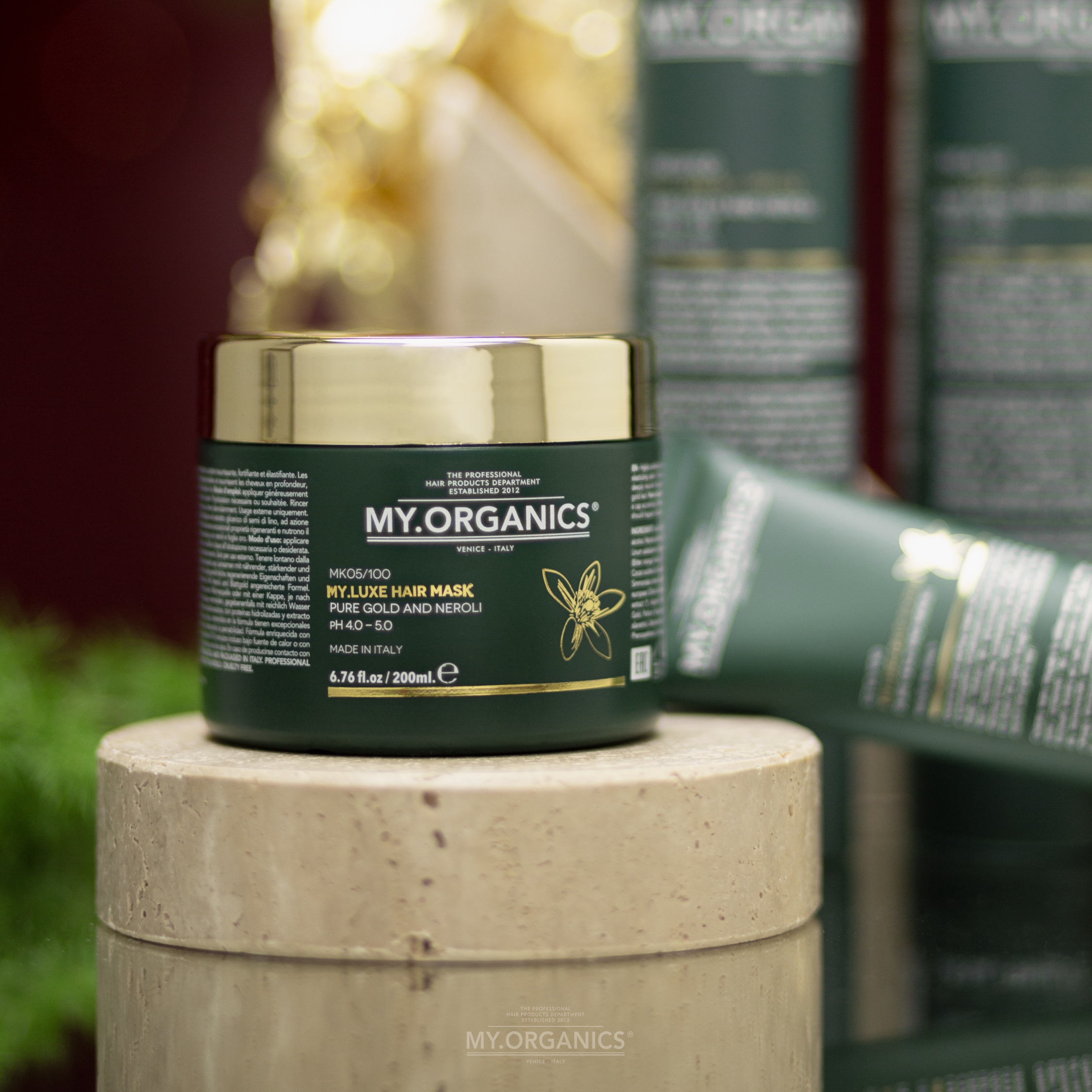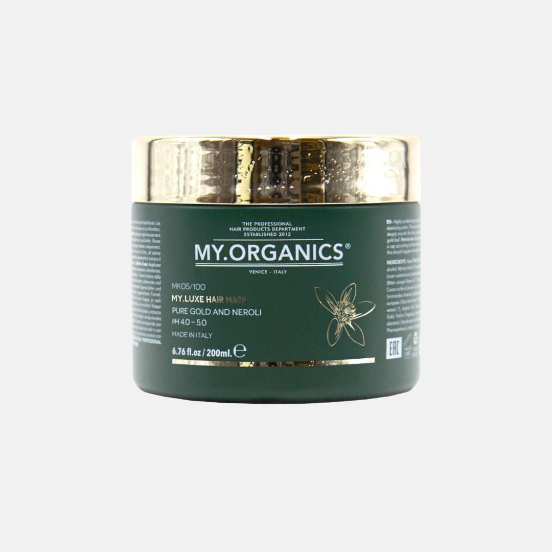 My.Luxe Hair Mask de MY.ORGANICS es una mascarilla ultrahidratante, reparadora y revitalizante creada para transformar el cabello seco, dañado o apagado desde la primera aplicación. Formulada con oro y aceite esencial de nerolí, aporta nutrición profunda y un brillo sofisticado que eleva cualquier rutina capilar.